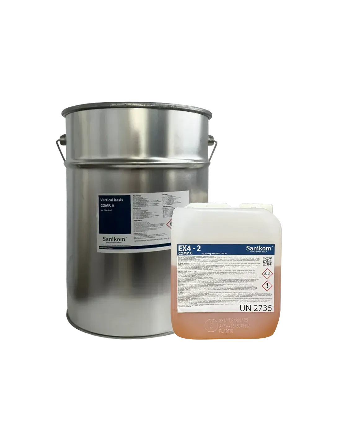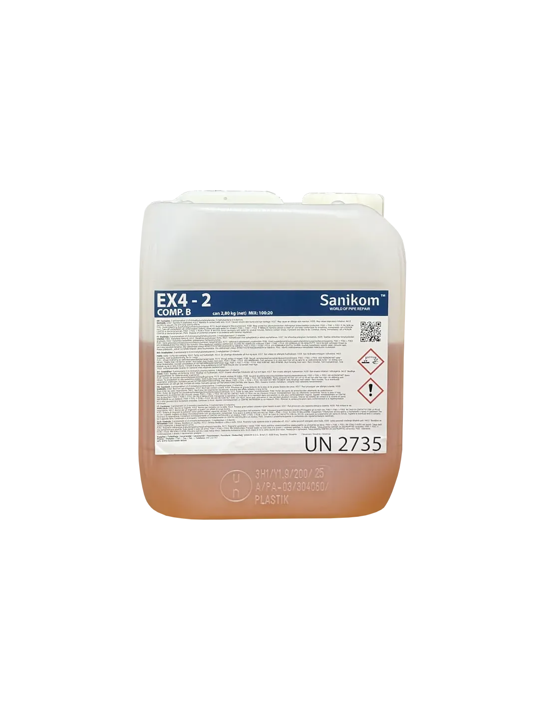 Sada vynikajícího reaktivního systému se střední viskozitou, která vytvrzuje rychle i při běžné teplotě okolí. Je určena pro rukávy Sanikom SX1 PP a Mainline a je ideální pro chladné prostředí a účinně reaguje i při teplotách až do 5 °C. Oba systémy se vyznačují vysokou mechanickou a chemickou odolností a zároveň stabilitou při teplotních změnách, i když jsou vytvrzovány v běžných podmínkách. Sada obsahuje množství v požadovaném poměru 100:20 s časem vytvrzení 150 až 180 min a dobou zpracovatelnosti 24 hodin. Balení obsahuje 14 kg báze a 2,8 kg epoxidové pryskyřice Sanikom EX4-2.