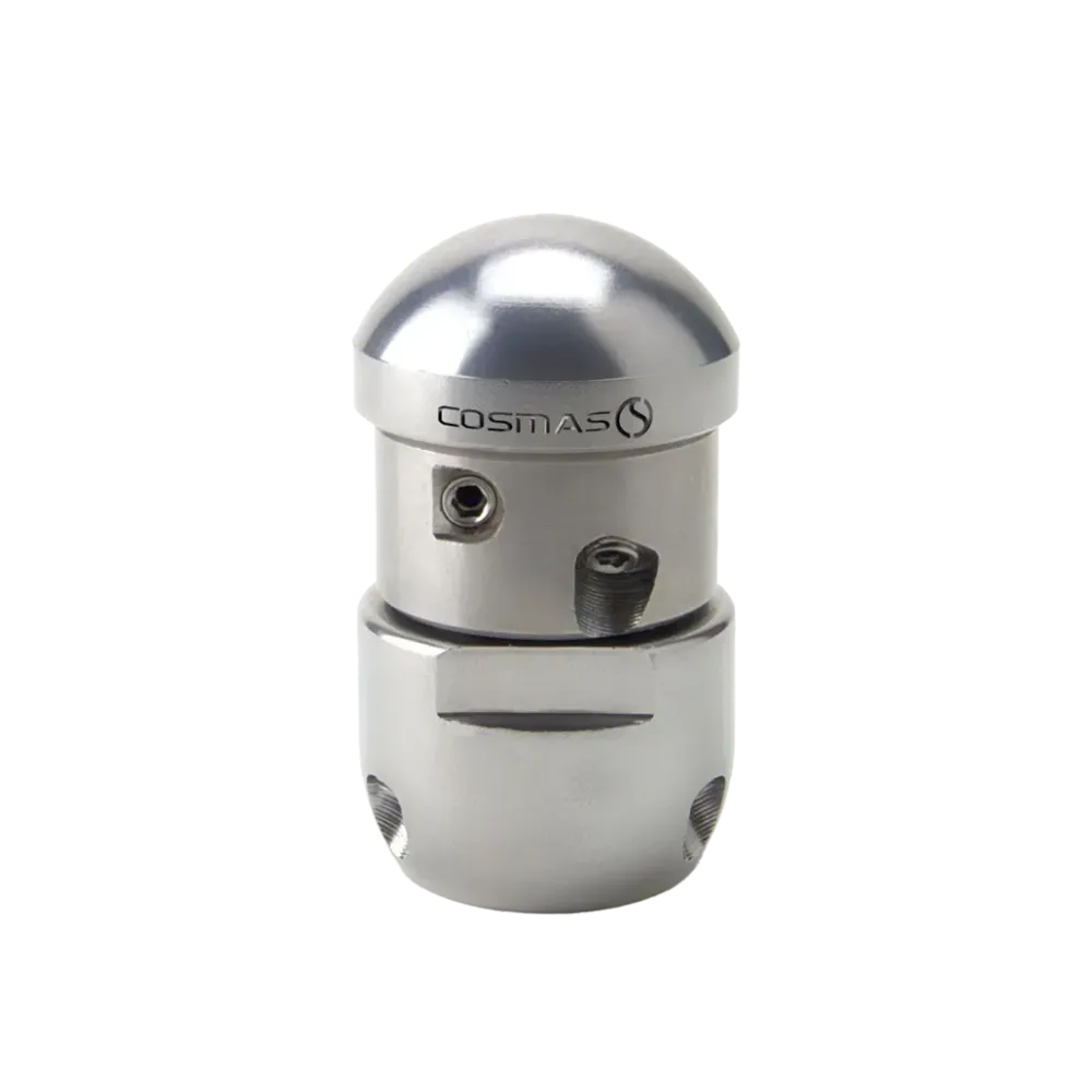 Rotační trysky se 2 kolmými tryskami (4× 90°) a 2 šikmými tryskami (4× 45°) jsou vyrobeny z nerezové oceli a vybaveny zadními tryskami pro posun a centrálními radiálními paprsky, které zajišťují rovnoměrné a důkladné čištění vnitřních stěn potrubí. Trysky jsou k dispozici se čtyřmi vyměnitelnými hlavicemi – plná (cover), vrtací (drilling), karbidová (karbid) a nožová (knives), což umožňuje jejich přizpůsobení různým typům nečistot a pracovních podmínek. Pro použití se znečištěnou nebo recyklovanou vodou se doporučují keramické vložky, které zaručují delší životnost a vyšší odolnost. Maximální pracovní tlak je 250 bar.