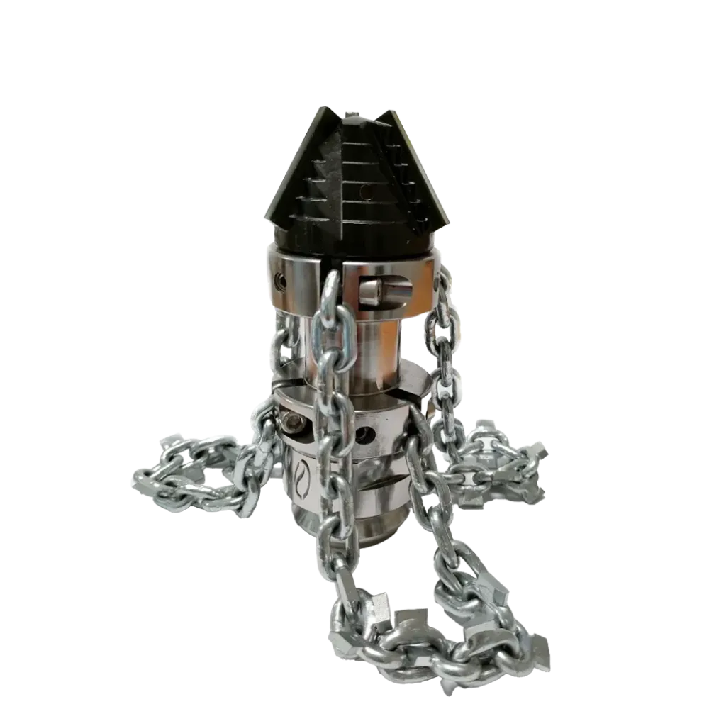 Pro dosažení maximální životnosti a čisticího účinku se doporučuje používat řetězové trysky s centrovacími vodítky a po každém použití je ponořit do mazací kapaliny. Tento typ trysky je určen k odstraňování kořenů, dřeva, mastnoty, kalu, ucpávek, pěny, ledu a rzi. Jednotlivé hlavice mají specializované použití: plná (cover) je vhodná pro pěnu a kal, vrtací (drilling) na rez, mýdlo a vodní kámen, karbidová (carbid) pro led, štěrk, kameny a beton a nožová (knives) pro dřevité nečistoty a prorostlé kořeny.