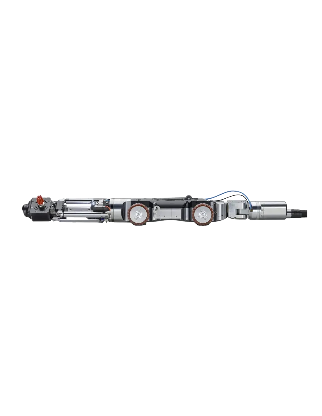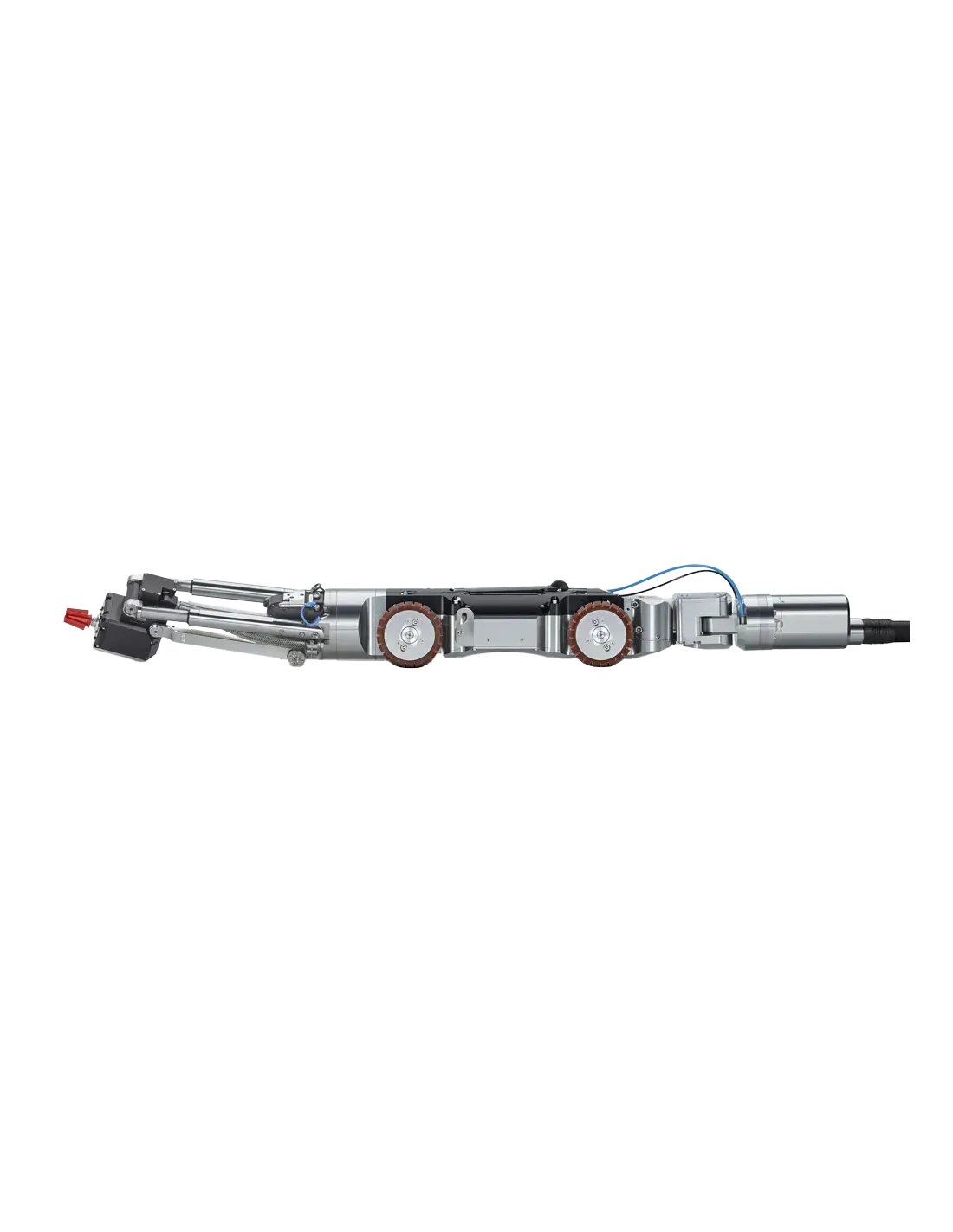 MicroGator 2.0 představuje špičkové řešení pro tzv. reinstatement – tedy otevření přípojek po vložkování, odstranění překážek nebo frézování usazenin a prorůstajících kořenů. Díky výkonnému elektrickému motoru nabízí tichý, stabilní a efektivní provoz bez zbytečných vibrací. Robustní podvozek zajišťuje stabilitu při práci a zároveň umožňuje přesné vystředění nástroje v potrubí. To je klíčové pro přesné frézování a minimalizaci rizika poškození potrubí. Systém je navíc vybaven pokročilou kinematikou včetně volitelné čtvrté osy, která umožňuje přesné řízení nástroje a dokonce i 360° frézování. Integrovaná kamera (CutterCam) poskytuje operátorovi detailní přehled o pracovním prostoru, což výrazně usnadňuje ovládání a zvyšuje bezpečnost práce. Díky tomu lze přesně cílit zásahy i v komplikovaných místech potrubí. MicroGator 2.0 je kompatibilní s inspekčními systémy IBAK a lze jej snadno integrovat do stávající infrastruktury, včetně kamerových vozíků a řídicích jednotek. To umožňuje kombinovat inspekci a sanaci v jednom systému a výrazně zefektivnit pracovní procesy. Systém je vhodný pro široké spektrum aplikací – od odstranění prorůstajících kořenů přes frézování přípojek až po úpravy linerů při bezvýkopových opravách potrubí. Díky své flexibilitě a výkonu představuje ideální nástroj pro profesionální firmy zabývající se údržbou a sanací kanalizačních sítí.