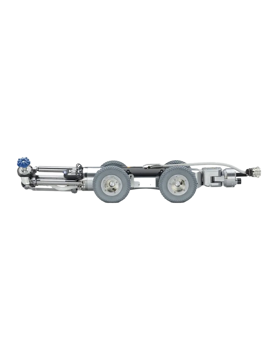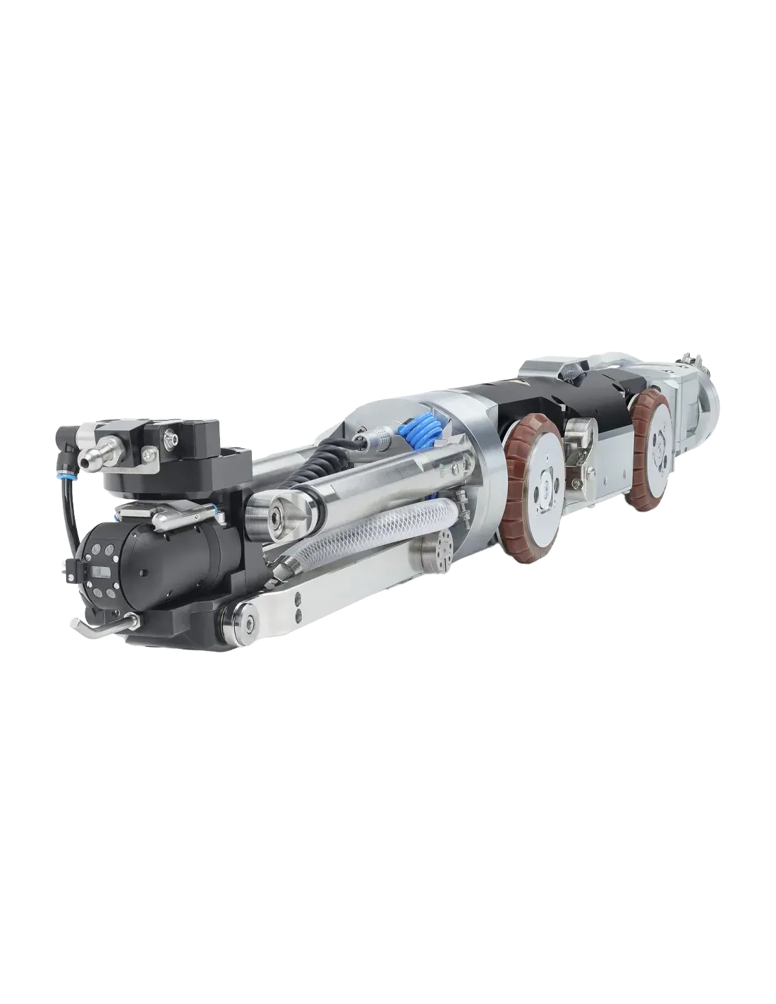 MicroGator Air je navržen jako multifunkční řešení pro náročné sanační práce v hlavních kanalizačních řadech. Pneumatický motor zajišťuje plynulý a silný chod při frézování betonových usazenin, prorůstajících kořenů, přípojek nebo úpravách linerů. Zároveň pracuje tišeji než elektrické systémy, což je výhodné zejména v městském prostředí. Díky modulární konstrukci lze systém snadno integrovat do inspekčního řešení IBAK MainLite a používat společně s kamerovými vozíky (např. T66 nebo T76) i řídicími jednotkami. To umožňuje provádět kompletní proces – od inspekce přes plánování až po samotnou sanaci – v rámci jednoho systému bez nutnosti výměny techniky. Velkou výhodou je přesné ovládání frézovacího nástroje, včetně 4. osy pro naklápění, která umožňuje práci i v obtížně dostupných místech. Integrovaná CutterCam s čisticí funkcí zajišťuje neustále čistý a ostrý obraz pracovního prostoru, zatímco zadní kamera usnadňuje bezpečné manévrování a přesné umístění robota. Systém umožňuje také rozšíření o další nástroje, například pro instalaci těsnicích manžet, práci s linerem nebo dokonce vysokotlaké vodní čištění. Díky tomu představuje univerzální řešení pro moderní bezvýkopové opravy potrubí. MicroGator Air lze provozovat jako mobilní jednotku i jako součást vozidlového systému, což zajišťuje maximální flexibilitu nasazení v terénu. Díky kombinaci výkonu, přesnosti a kompatibility je ideální volbou pro profesionální firmy zaměřené na diagnostiku a sanaci kanalizačních sítí.