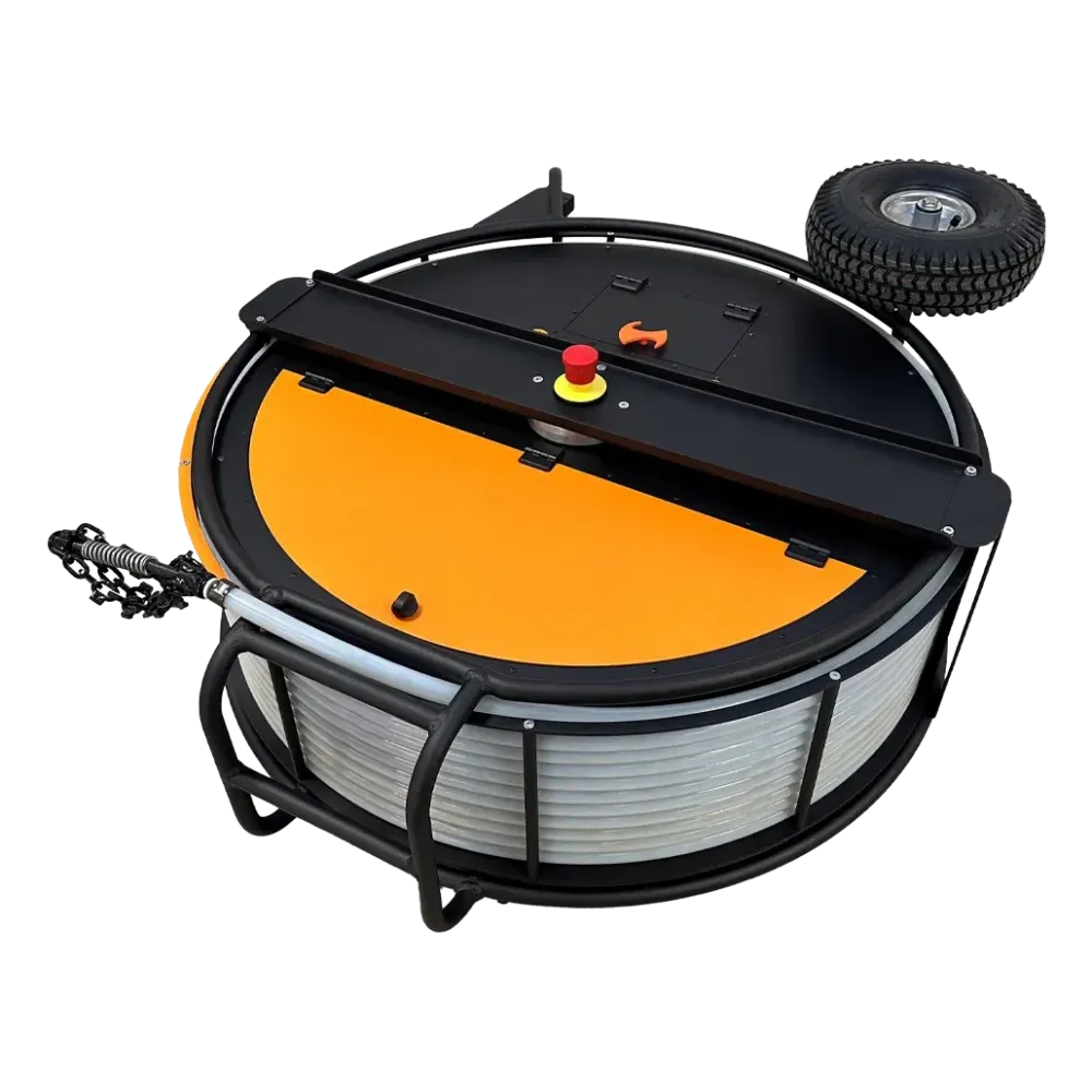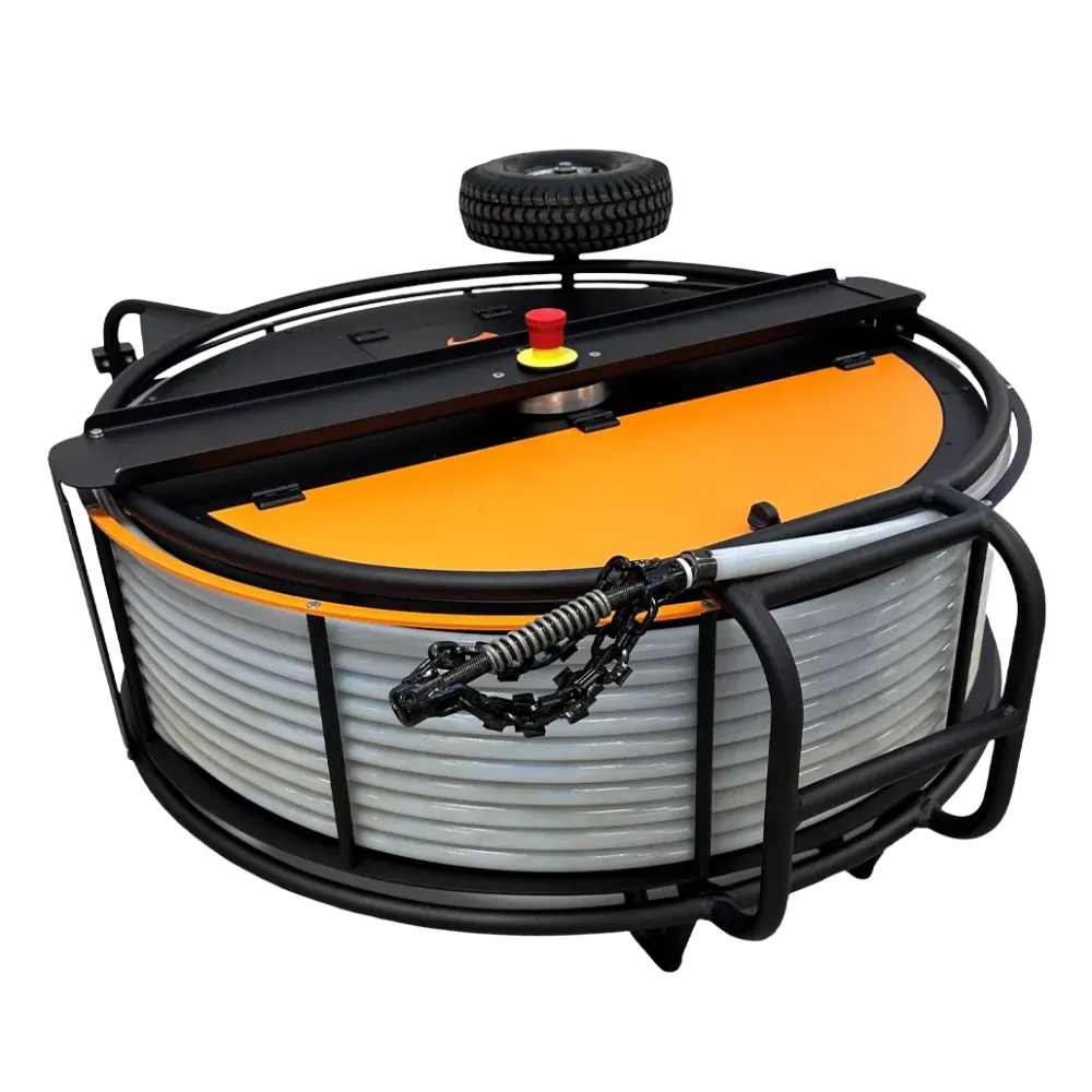 RZ3 umožňuje volbu mezi 35metrovou hřídelí o průměru 10 mm nebo 30metrovou hřídelí o průměru 12 mm – výměna je snadná a přizpůsobitelná aktuálním potřebám. Díky velkým terénním kolům a uzavřené konstrukci je stroj vhodný i do náročných podmínek a snadno se přepravuje. Integrovaná bezpečnostní spojka (E-clutch) chrání motor při zablokování nástroje, zatímco bezdrátový ovladač s displejem umožňuje přímé řízení otáček a točivého momentu během práce. Celohliníkové šasi zajišťuje dlouhou životnost, stabilitu a snadnou manipulaci – ať už pracujete ve stoje nebo v leže.