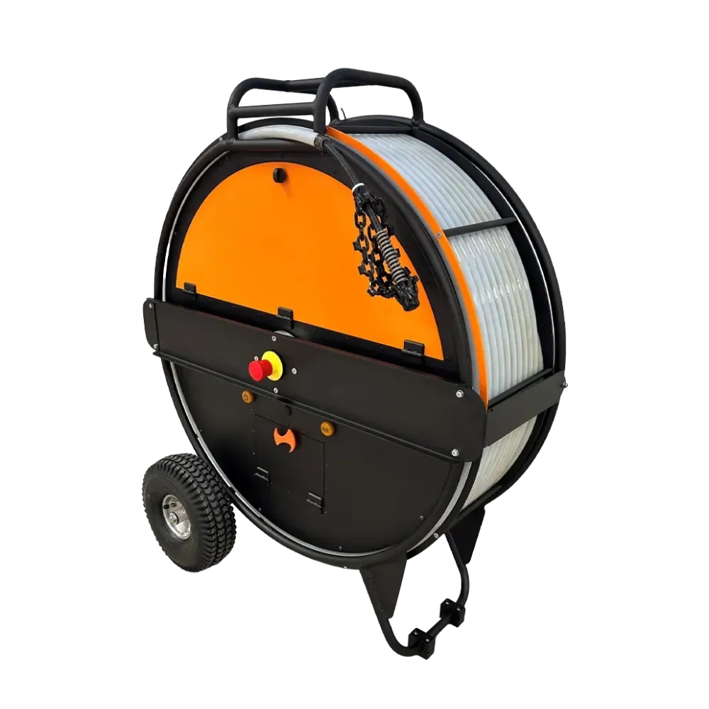 Renzorato RZ3 je nejsilnější všestranná fréza určená pro profesionální čištění potrubí o průměru 75–250 mm. Díky své mimořádné síle si poradí i s extrémními překážkami, jako jsou kořeny, beton, vodní kámen nebo zhroucené vložky. Kombinuje robustní konstrukci, tichý elektrický pohon a bezdrátové řízení v kompaktním, snadno přenosném provedení. Díky vyměnitelným hřídelím a chytrému designu je ideální volbou pro ty, kteří hledají výkonné, bezpečné a flexibilní řešení pro každodenní práci v kanalizacích.