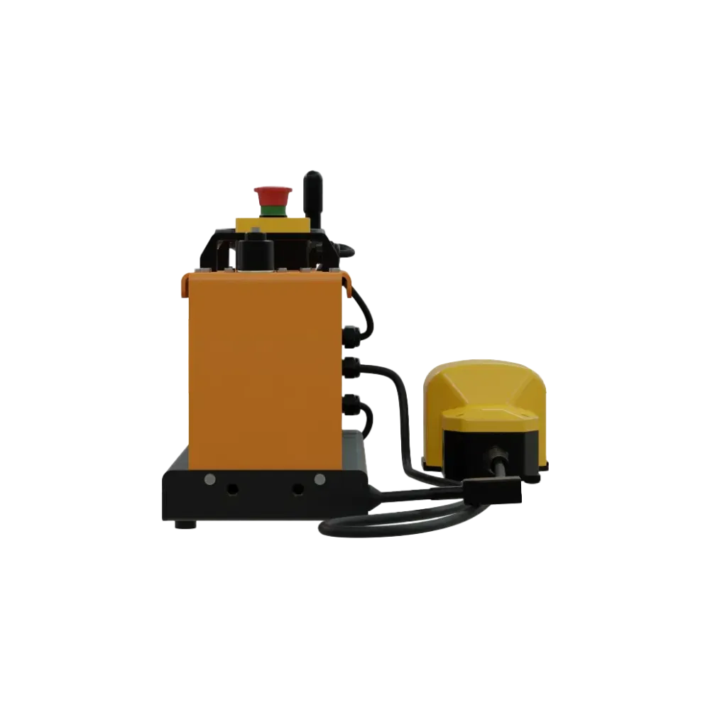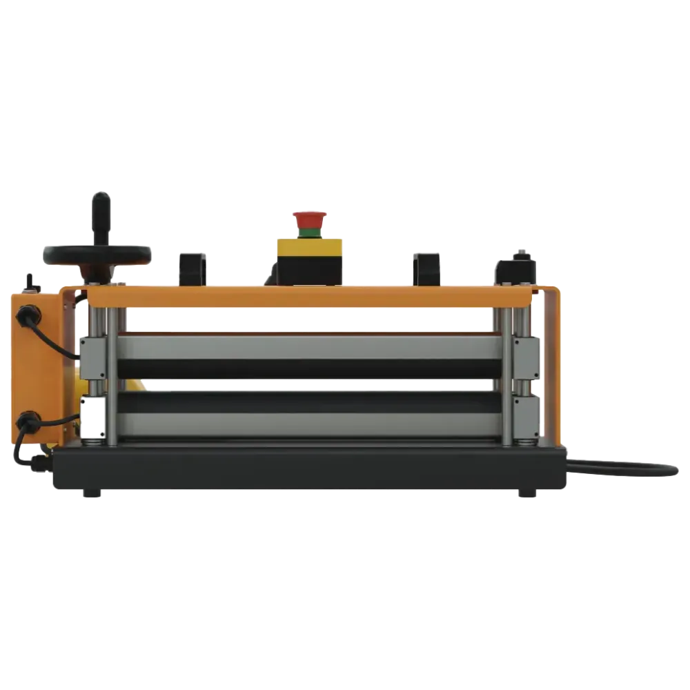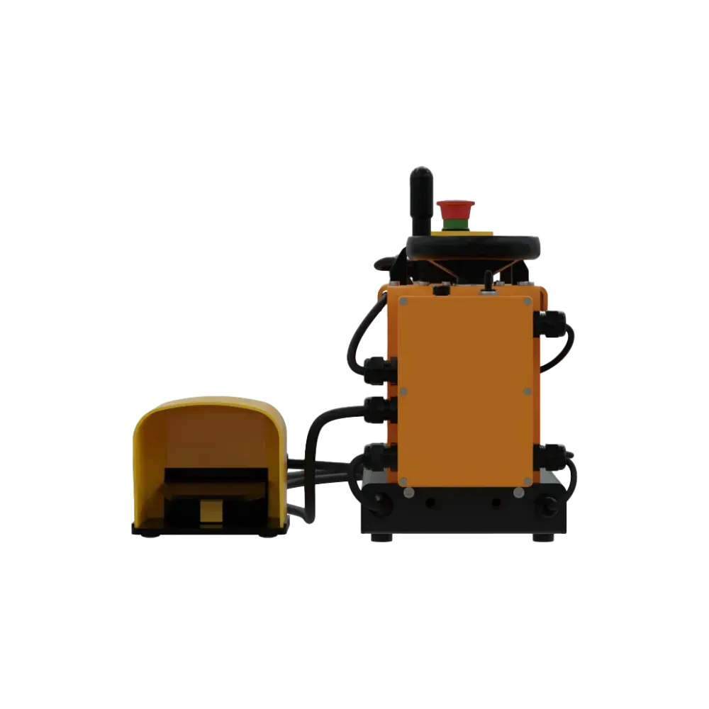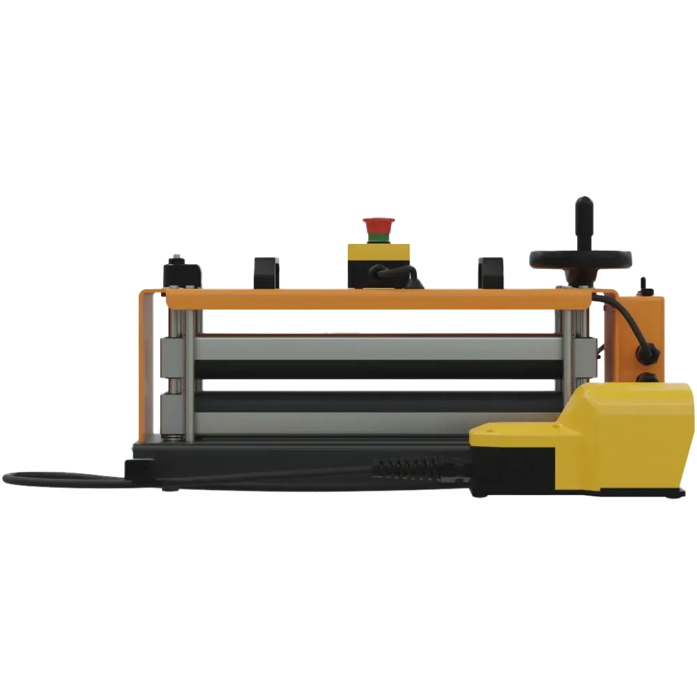Zařízení je vybaveno inteligentními bezpečnostními funkcemi včetně automatického zastavení válců při nadměrném tlaku, bezpečnostních krytů a nouzového vypínače. Díky napájení 100–240 V a kompaktním rozměrům (650 × 200 × 360 mm) je E-Roller 450 vhodný jak pro stacionární použití na pracovním stole, tak i pro mobilní provoz v dodávkách a přívěsech. Nožní ovládání zajišťuje pohodlnou práci, zatímco rychloupínací systém usnadňuje montáž a demontáž. Součástí dodávky je i ovládací pedál a návod k použití.