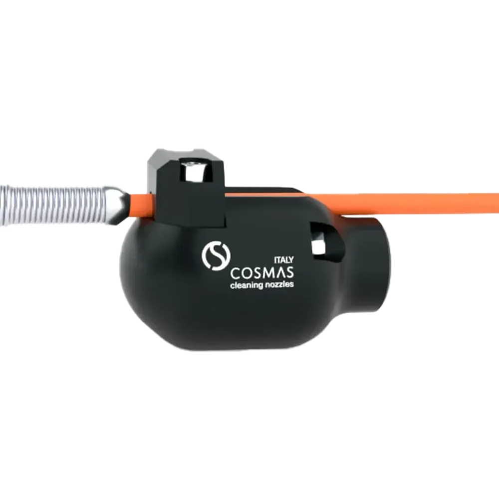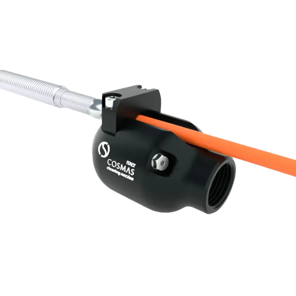 Tato tryska je ideální pro inspekční práce v kanalizačních a odpadních systémech, kde je potřeba dopravit kameru hluboko do potrubí. Směrové trysky zajišťují stabilní a rovnoměrný pohyb kamery vpřed i ve složitých úsecích. Použití této trysky snižuje mechanické namáhání vodicí tyče a zvyšuje přesnost a efektivitu inspekce. Vhodná pro techniky pracující s tlačnými kamerovými systémy v profesionálním provozu. Balení obsahuje 7 svorek pro různé průměry kabelů (Ø 6,0 – Ø 6,8 – Ø 8,0 – Ø 9,0 – Ø 11 – Ø 12,50 – Ø 15)