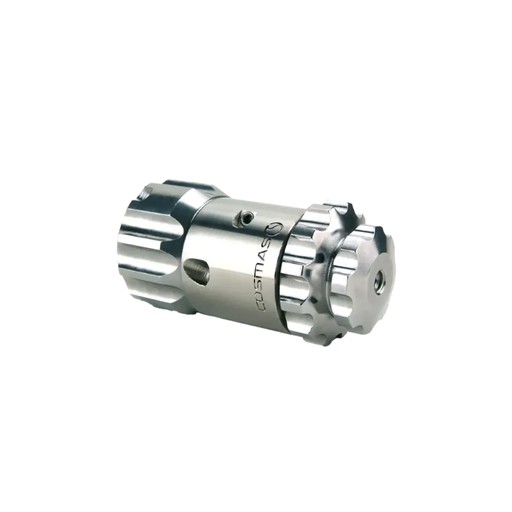 Vibrační tryska s dvojitou korunkou je konstruována s excentrickým středovým tělem a speciálně tvarovanou zadní osou a hlavicí, které během provozu vytvářejí silné rázy a vibrace. Tyto vibrace umožňují účinné rozrušování a drcení usazených překážek, díky čemuž je tryska ideální pro nasazení v potrubích silně zanesených tvrdými nečistotami. Tryska je osazena keramickými tryskovými vložkami pro nejdelší možnou trvanlivost. Maximální tlak je 250 bar.