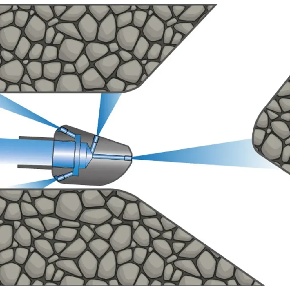 Čisticí tryska ET19 Bifurcation má oválný tvar a je vybavena boční hranou a boční tryskou se sklonem 15°, která vytváří protitlak a tím usměrňuje trysku do směru ohybu nebo rozbočení potrubí. Díky tomu je tryska ideální pro přesné vedení při průchodu koleny a větvením v potrubních systémech. Tryska je určena pro účinné čištění vodního kamene, kalu, mastnoty, mýdlových usazenin a olejových zbytků. Svou konstrukcí umožňuje spolehlivý průchod zakřiveními i rozbočkami potrubí, kde je přesné navedení klíčové pro efektivní čištění. Maximální pracovní tlak trysky je 250 bar.
