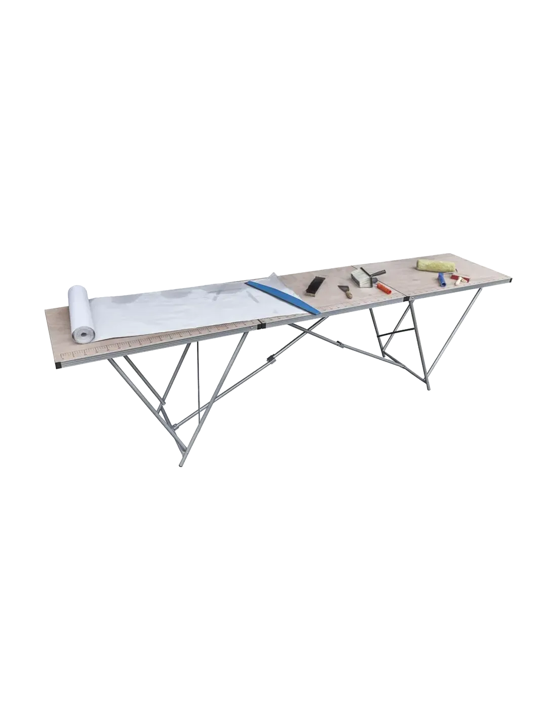 Skládací pracovní stůl Kanalbros o hmotnosti 18 kg a celkové ploše 306 × 80 × 86 cm je ideální volbu pro řemeslníky, renovace i domácí dílnu. Díky lehké hliníkové konstrukci je snadno přenosný, přesto nabízí pevnou a stabilní pracovní plochu. Rychlé skládání a kompaktní skladování z něj činí praktického pomocníka při renovaci potrubí.Pracovní stůl Kanalbros kombinuje odolnost a mobilitu: robustní rám z hliníku tloušťky přibližně 4,5 mm zajišťuje dlouhou životnost a stabilitu. Velká plocha nabízí dostatek prostoru pro nářadí, materiály nebo práci ve dvou. Konstrukce je navržena tak, aby zvládla nároky profesionálního řemeslníka i domácího kutila. Po dokončení prací se stůl snadno složí do rozměru 99 × 80 × 10 cm a šetří tak výrazně místo k převozu nebo skladování.